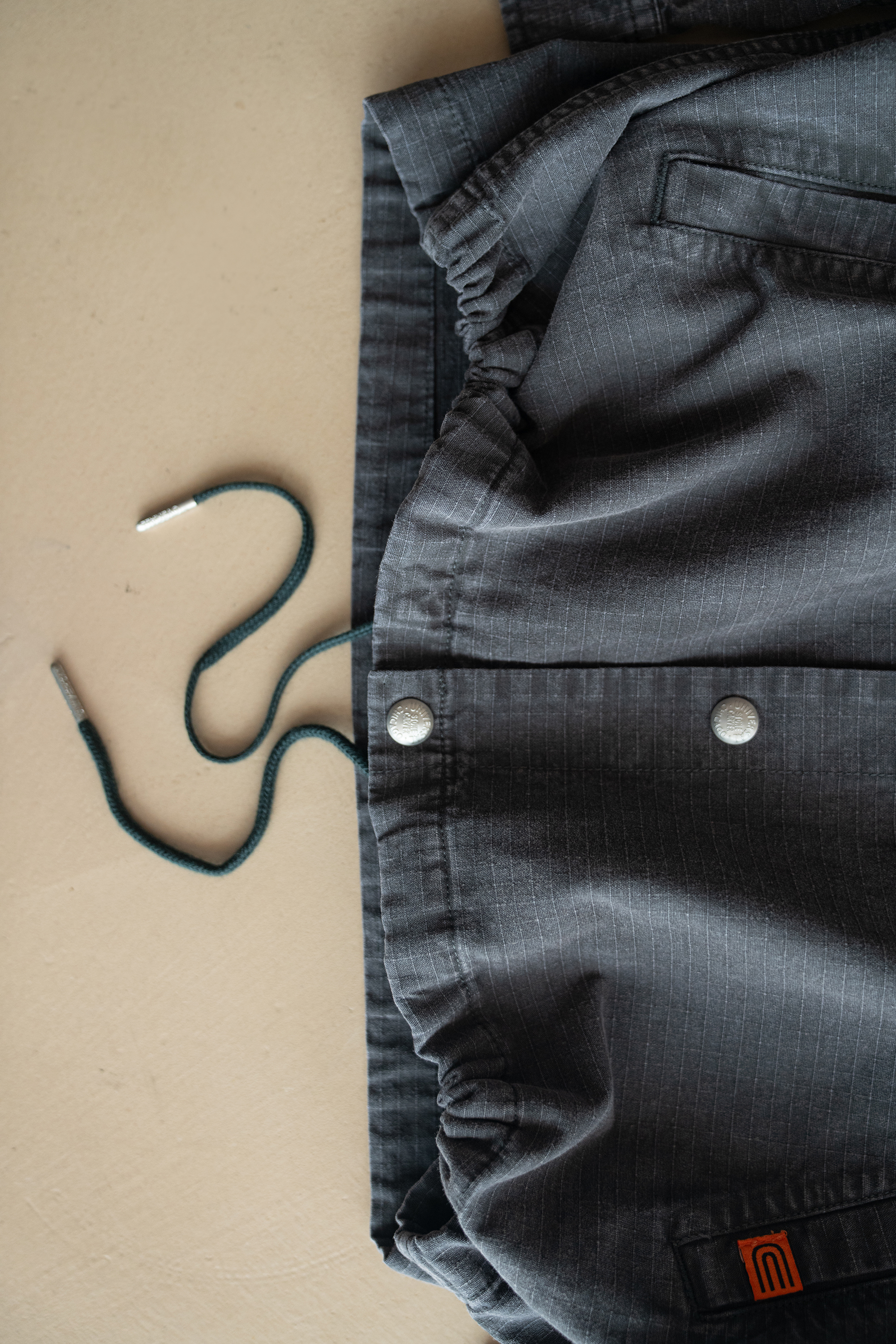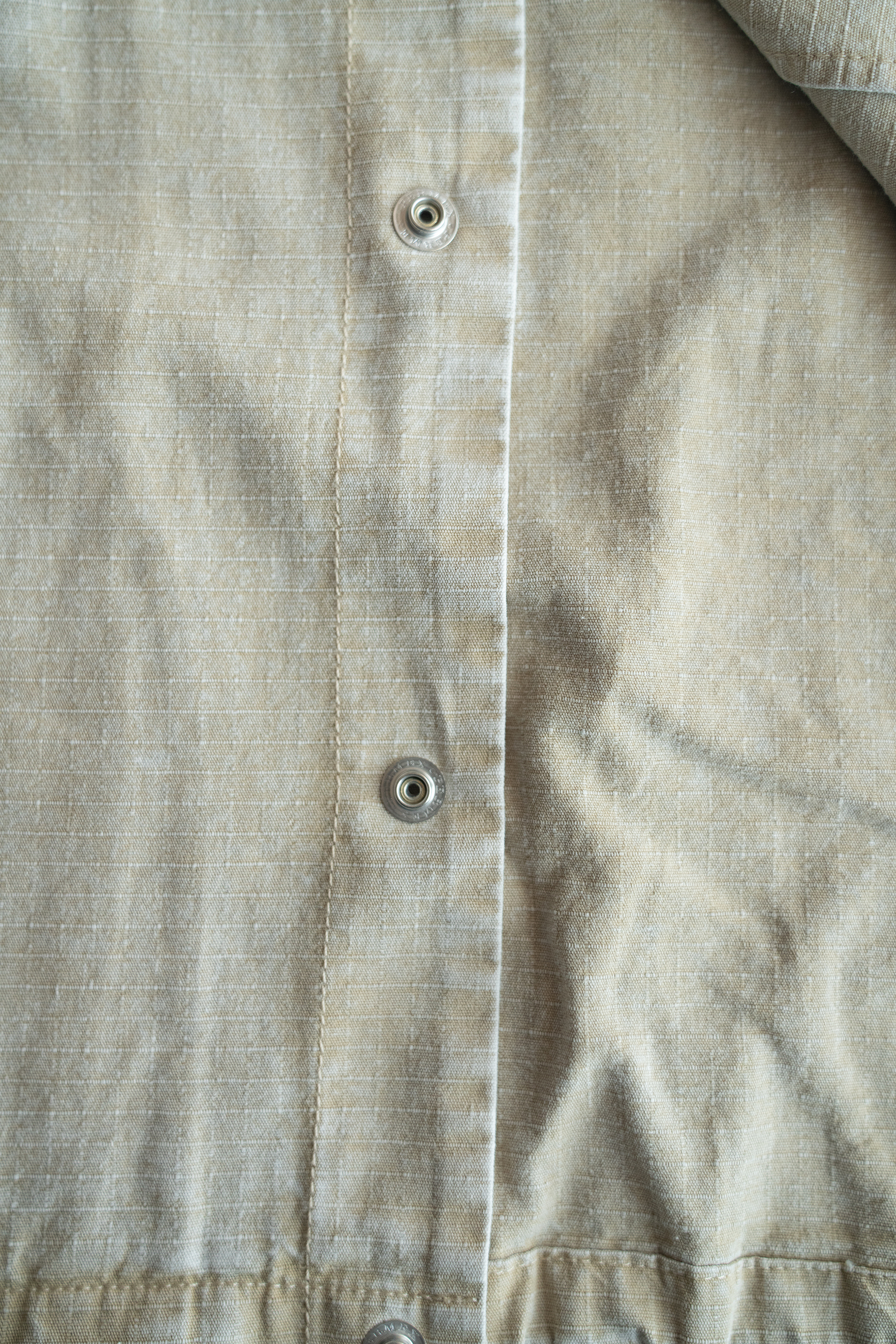 ・此布料原多用於軍用品,但此次特別經過硫化染處理,再加上最終的化學洗加工,使整體呈現出更具復古感的 風格
