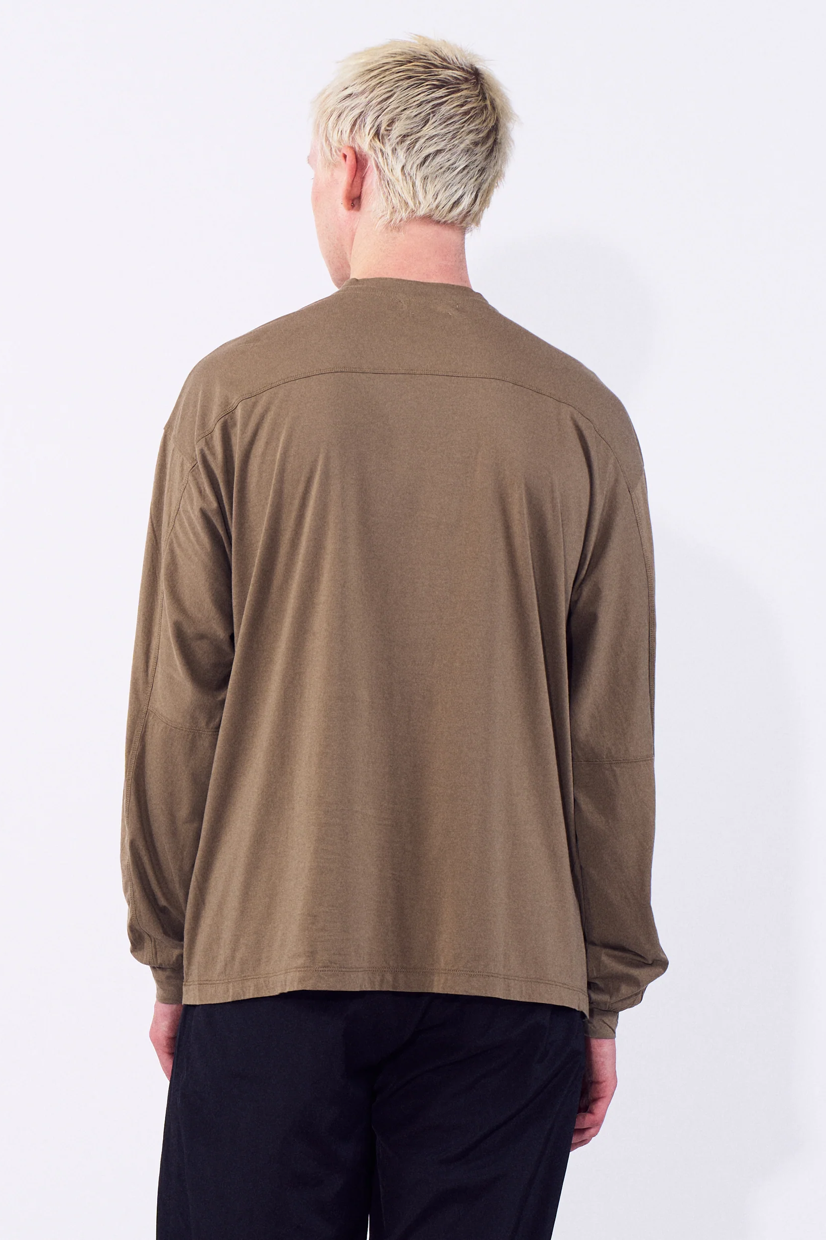・正面為 Set-in Sleeve,背面則以 Dolman Sleeve結構呈現,帶出自然的寬鬆感與立體流線