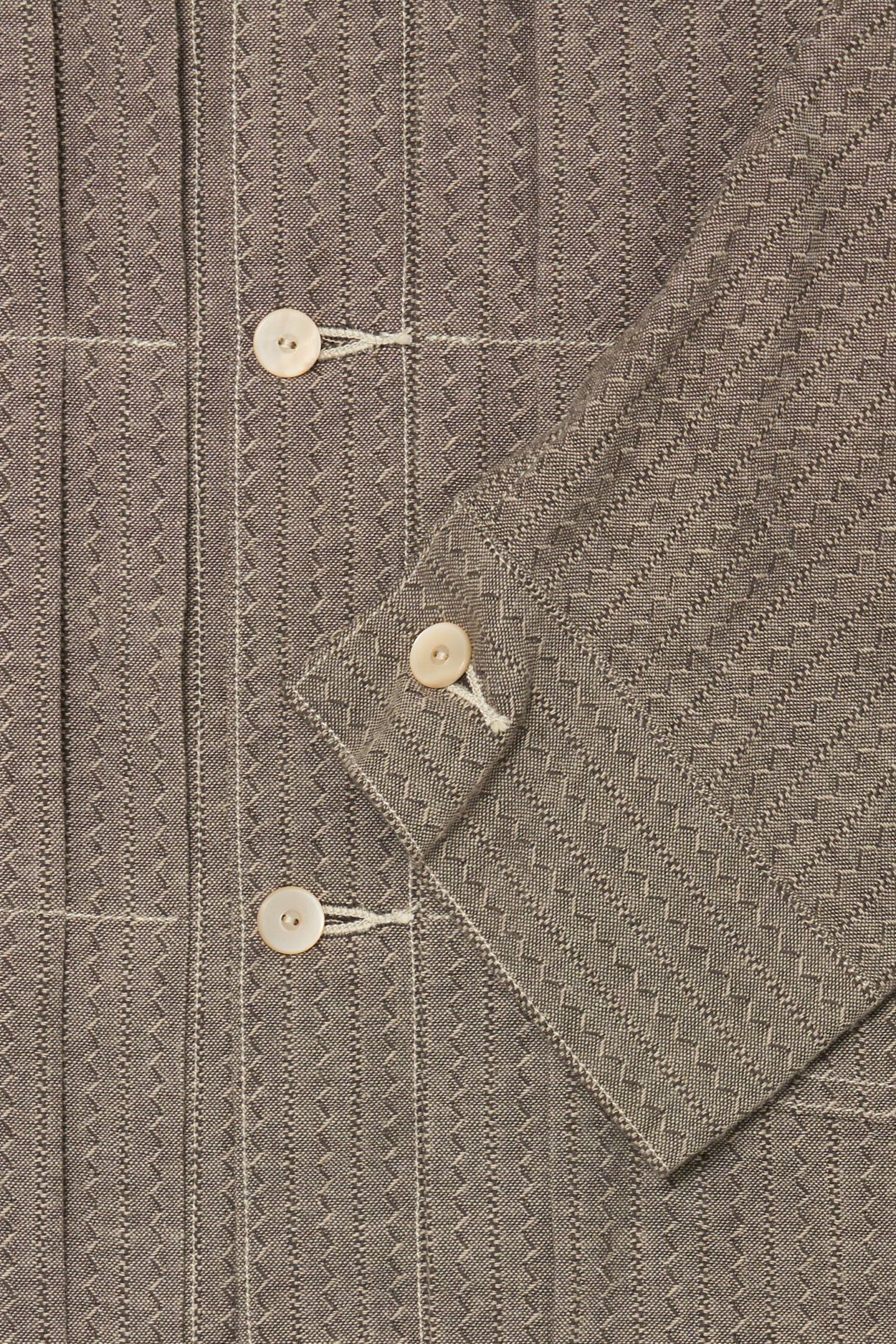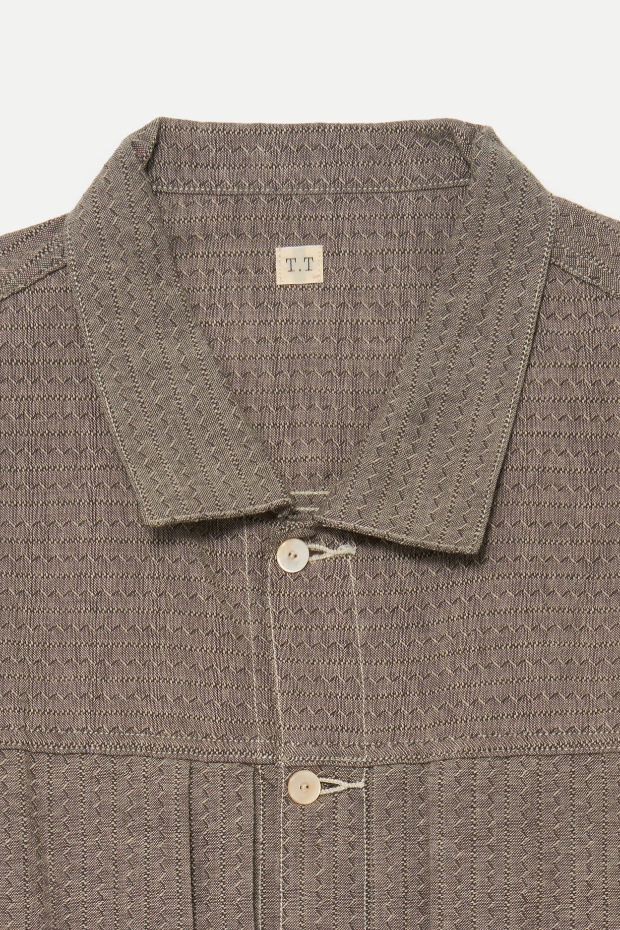 · 採用 9120 年代工裝襯衫常見的 Tupelo Madras Chambray 提花布料,布面帶有織入式圖紋